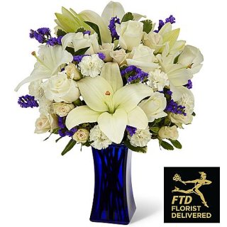 ホワイトリリーとホワイトフラワー・ライトパープルのさわやかなブーケです。