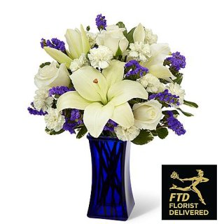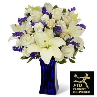 ホワイトリリーとホワイトフラワー・ライトパープルのさわやかなブーケです。