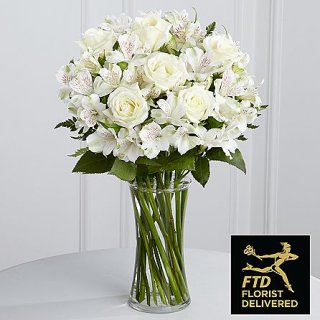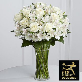 ホワイトローズとアルスとロメリアの素敵なアレンジメントです。