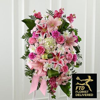 葬儀や悲しみのセレモニーへのスタンド花です。
