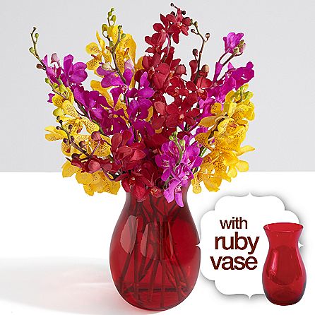 Mokara Orchids with Ruby Vase [30240164]